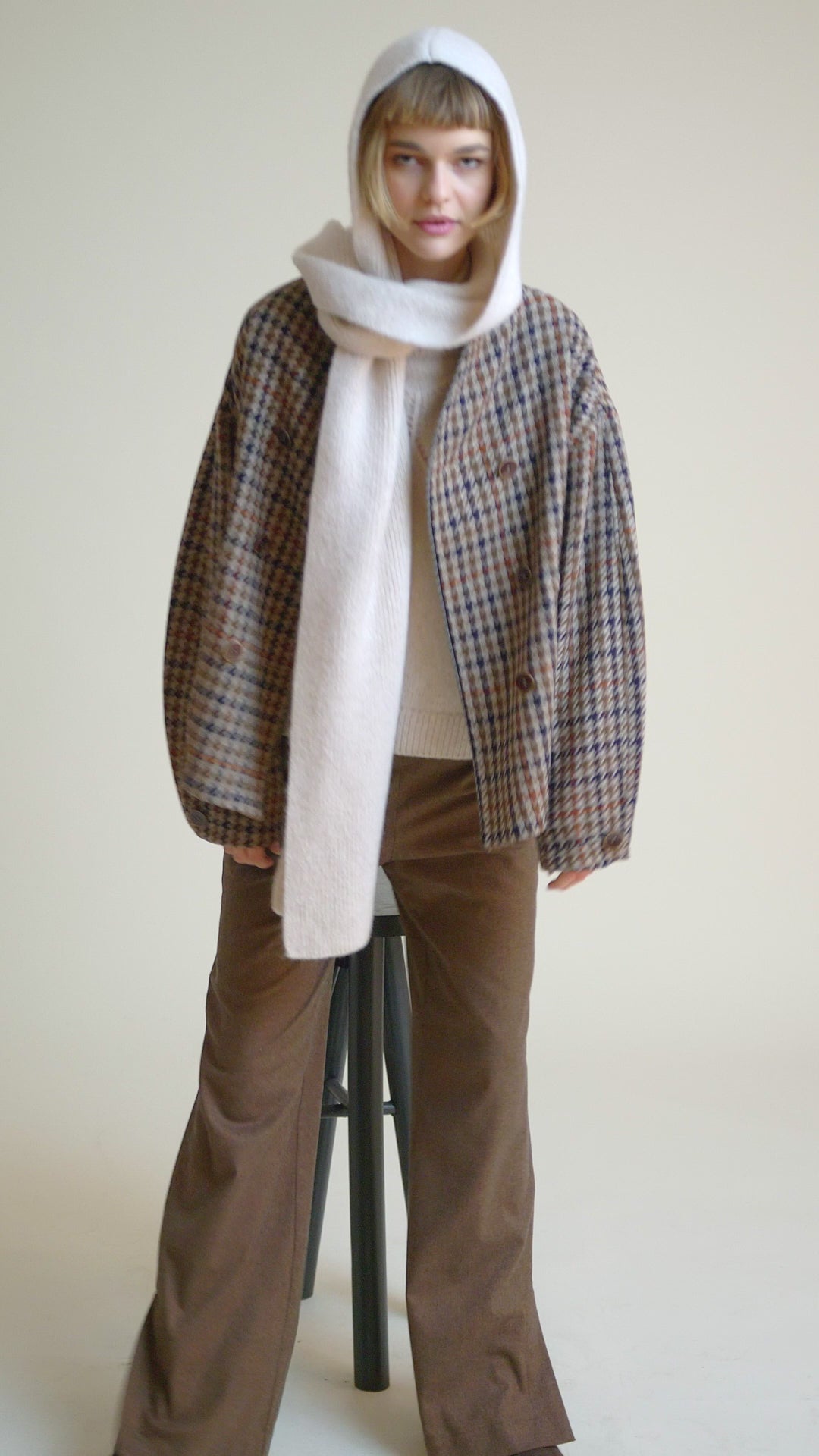 Weicher Kapuzenschal aus Wolle in zwei winterlichen Farben.