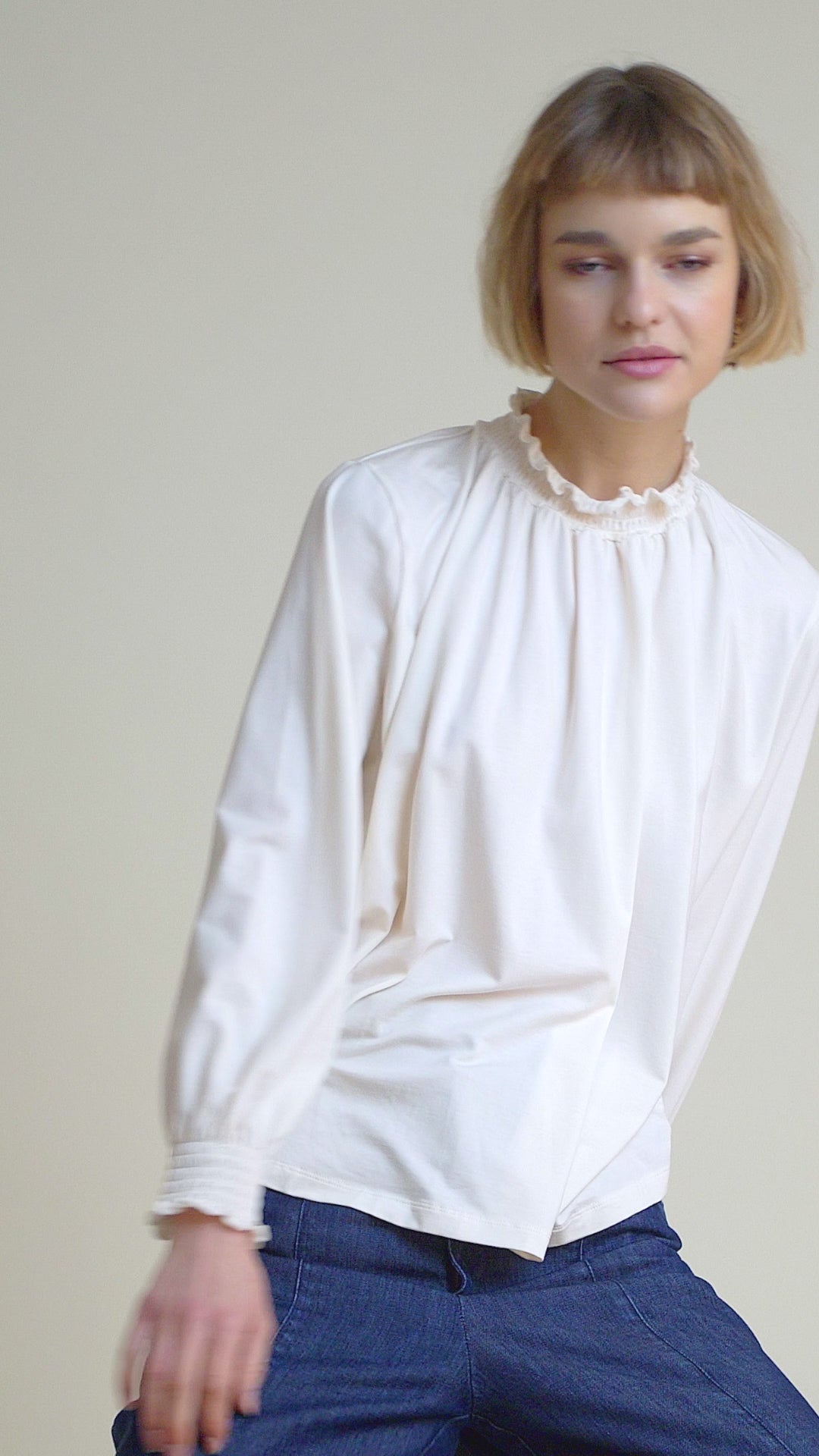 Weich fallendes Longsleeve mit gesmoktem Kragen und Ärmlsaum aus Lyocell.