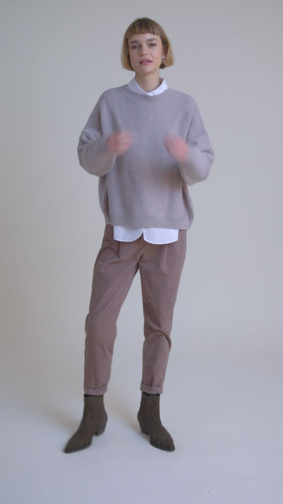 Samthose mit Bundfalten und schmalem Saum durch einen zusätzlichen Abnäher in zwei modischen Farben. Der Elasthananteil sorgt für mehr Tragekomfort.